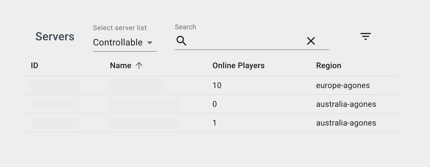 Now you will be provided with a list of servers. You can filter them for like servers, you use to visit, or servers you are able to admin. No matter how the list looks like, you can only connect to servers, you are allowed to admin and when they are online with at least one player.